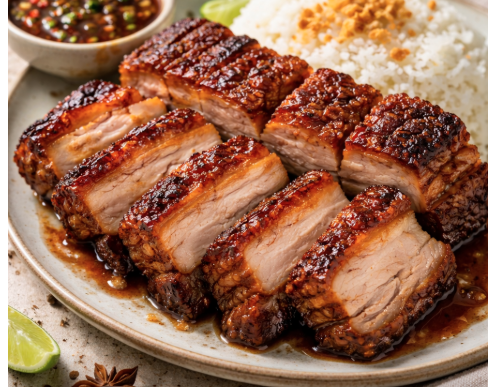 View RecipePork belly slow-cooked in RoniB's Kitchen Adobo Sauce until meltingly tender, then grilled to crispy, crackling perfection. The cooking liquid reduces into a rich, glossy sauce — simple, bold, and totally worth it.
