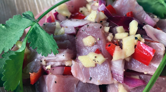 View RecipeFresh sashimi-grade tuna cured in sugarcane or coconut vinegar, then tossed with shallots, red onion, ginger, and fresh chillies — all finished with a drizzle of RoniB's Kitchen Garlic Chilli Oil. A no-cook Filipino classic that's light, zingy, and ready in just 15 minutes.